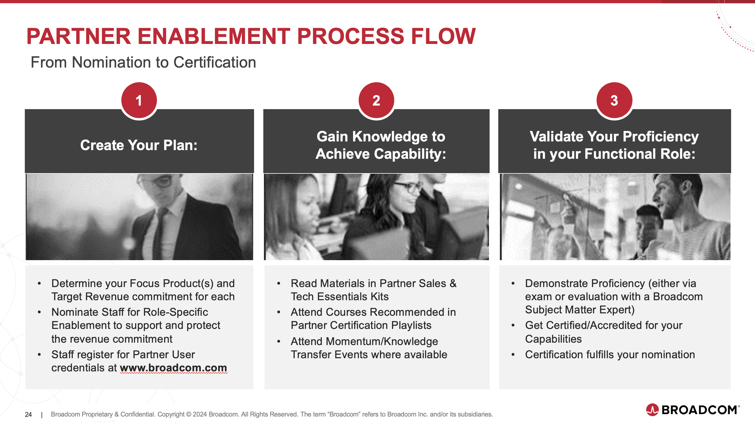 Broadcom에서는 다음과 같이 파트너 활성화를 위한 프로세스를 정의하고 있음.