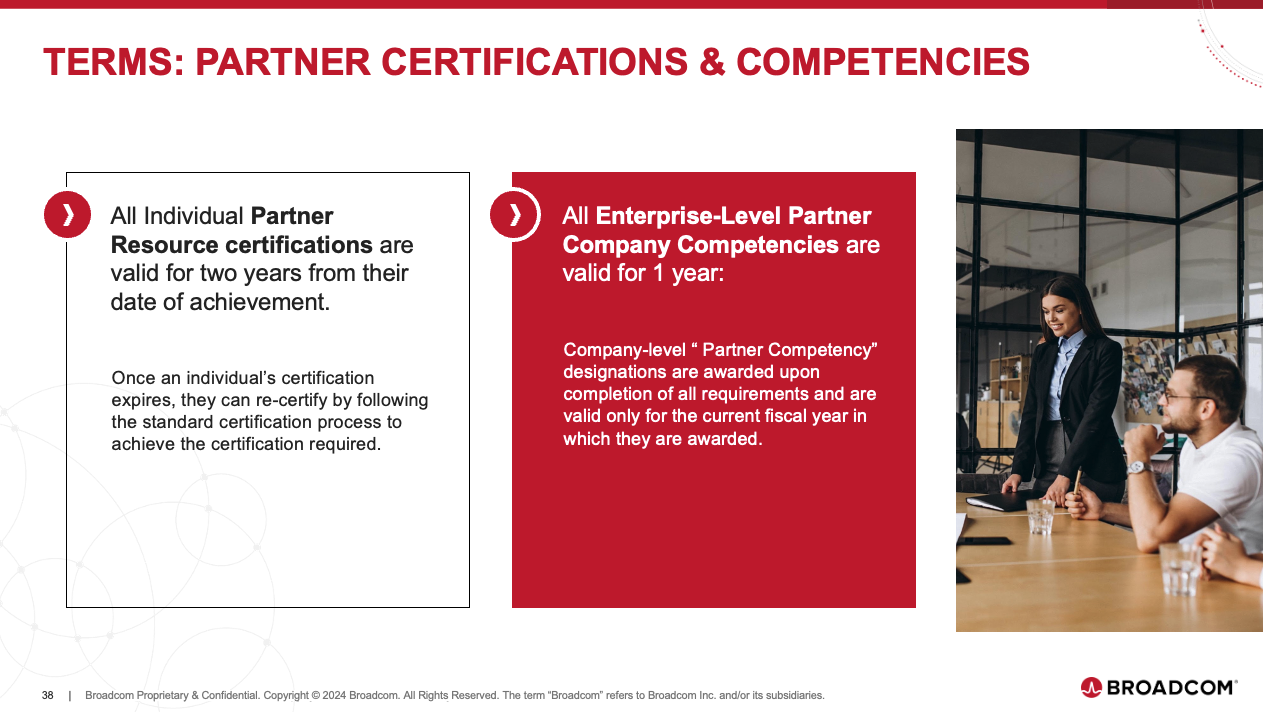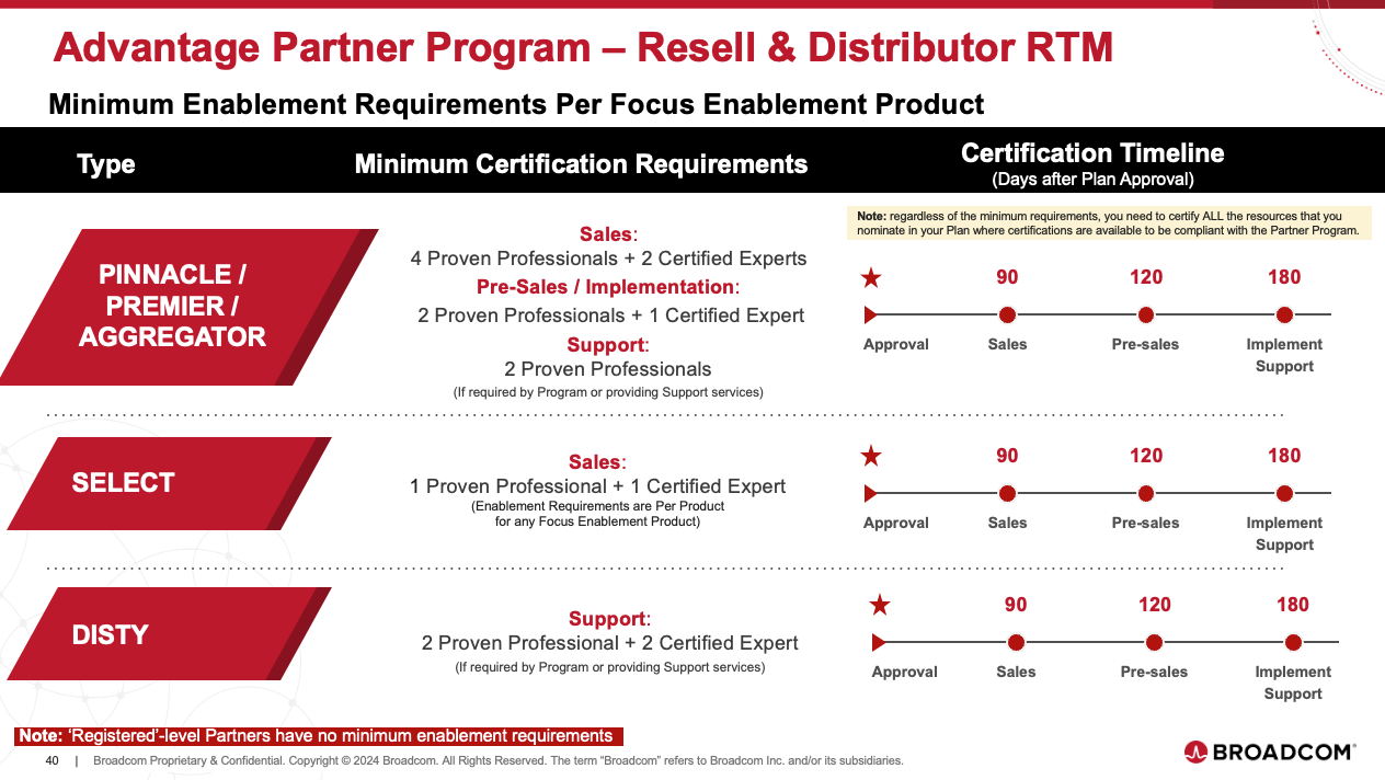 - Broadcom 은 2가지 수준의 인증을 요구함
