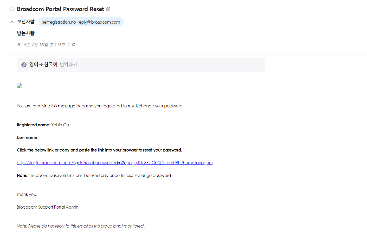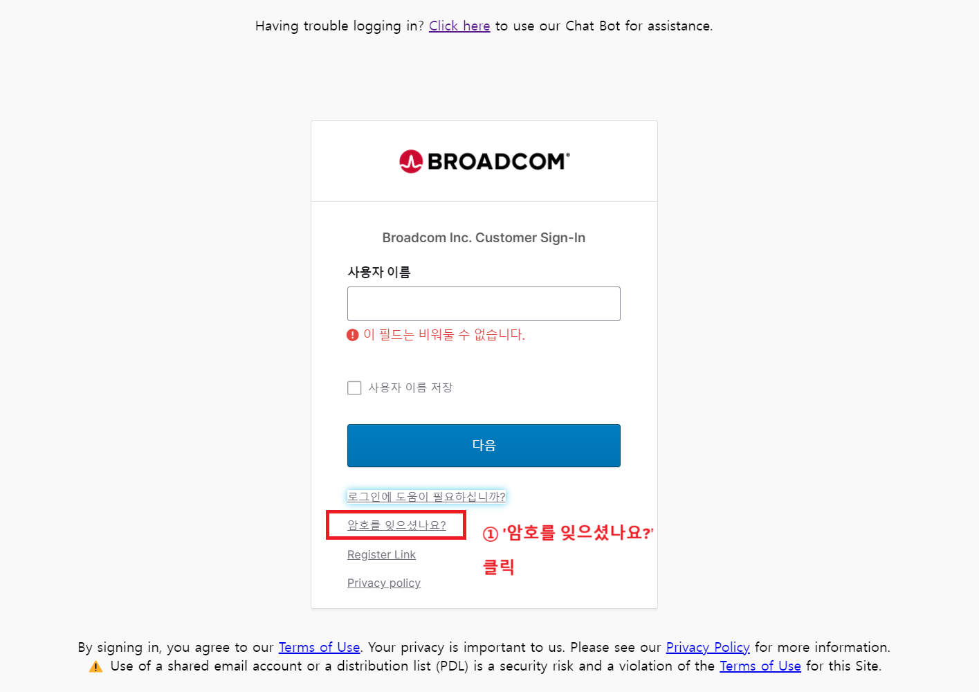 기존 VMware 고객의 경우, 새로 포탈 회원가입을 하지 않고 기존 VMware 계정 이메일로 Broadcom Support Portal 로그인이 가능하다. 다만, 비밀번호 초기화 과정을 거쳐야만 로그인이 정상적으로 진행된다.
