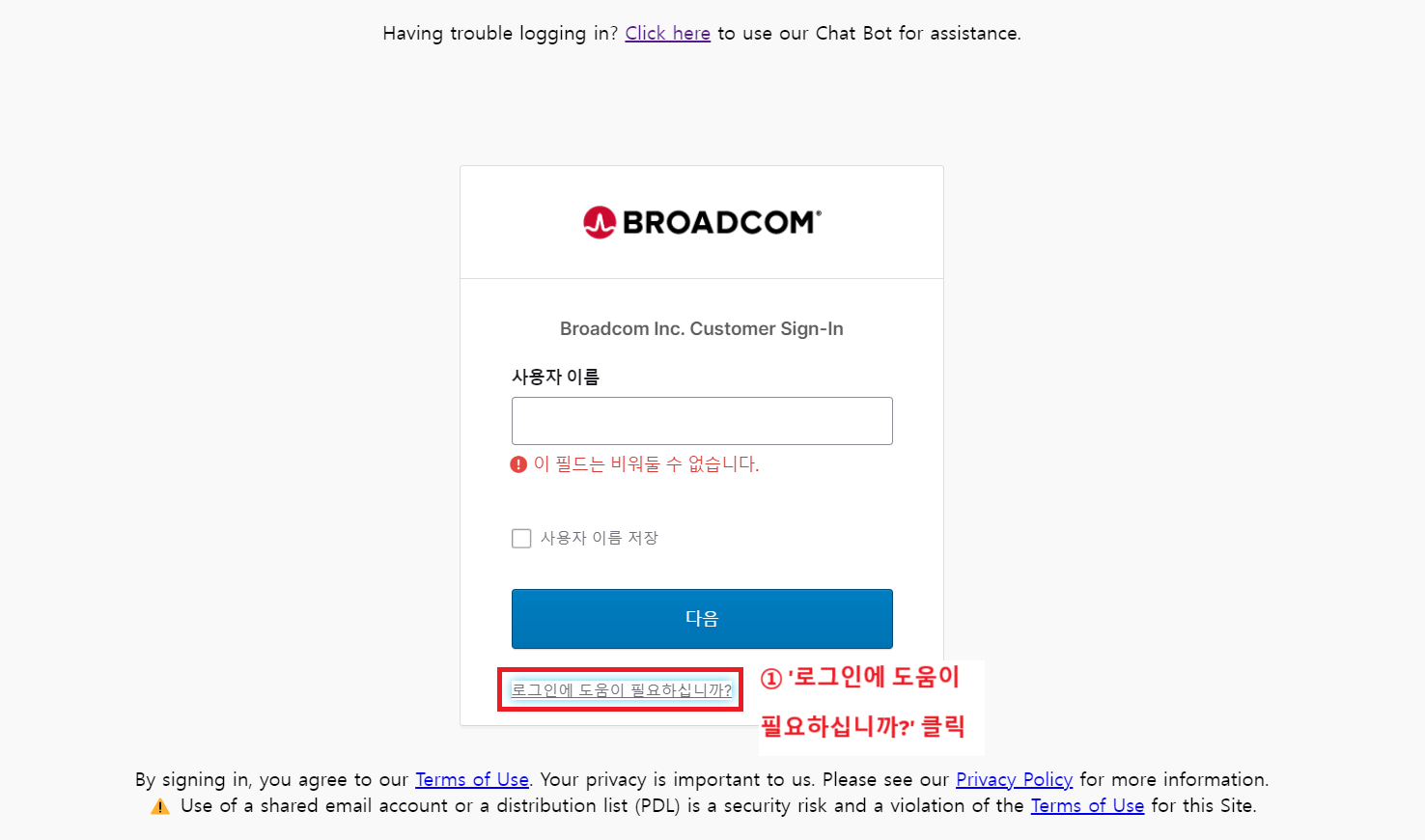 Broadcom Support Portal 접속