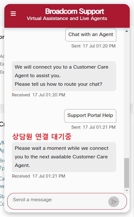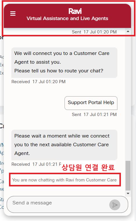 Agent와 연결되는 데 시간이 소요될 수 있으며, Agent와 연결이 되지 않고 다시 자동응답 과정(위 선택 과정)으로 돌아갈 수 있음. |