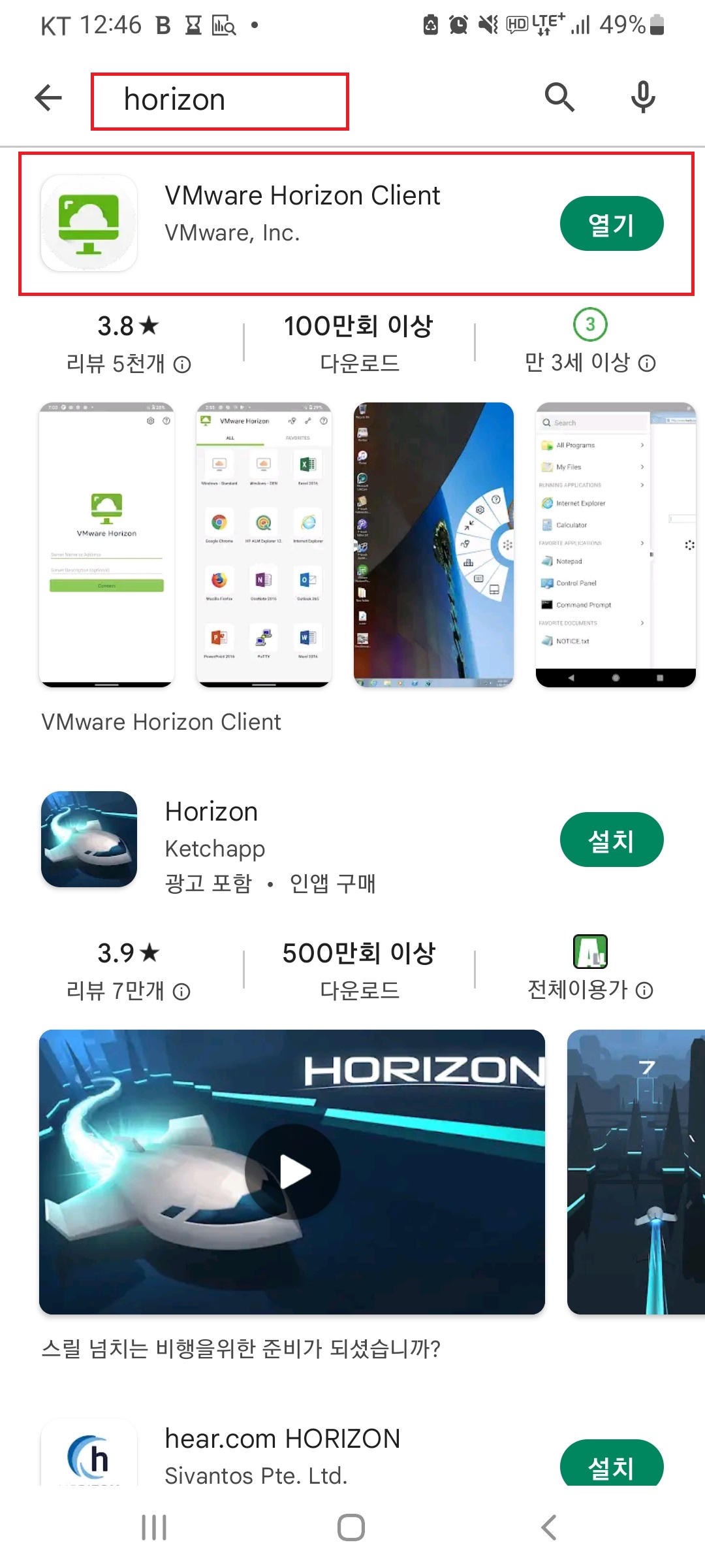 앱스토어에서 horizon 을 검색하여 애플리케이션 다운로드