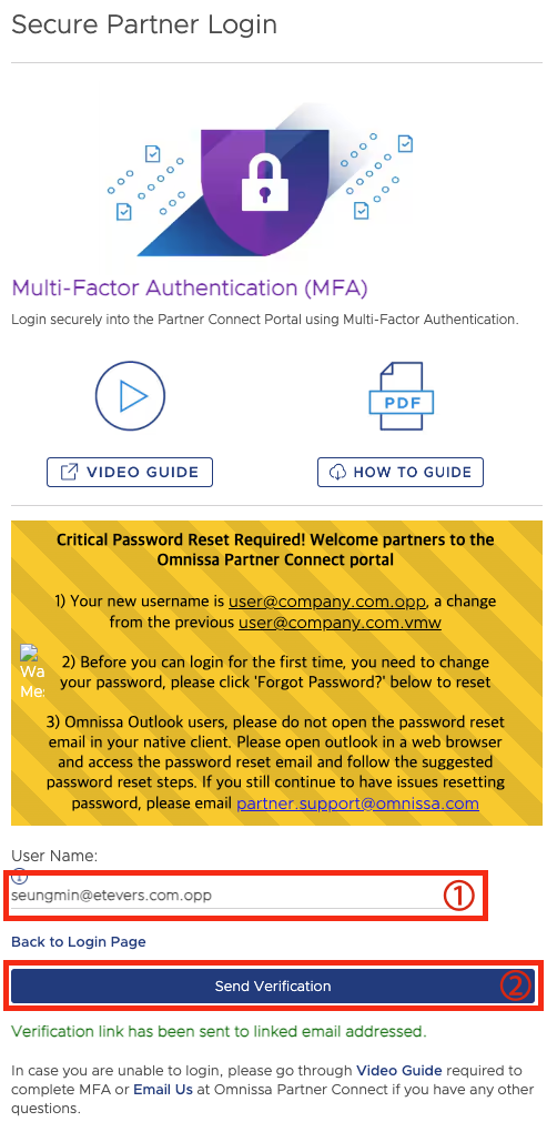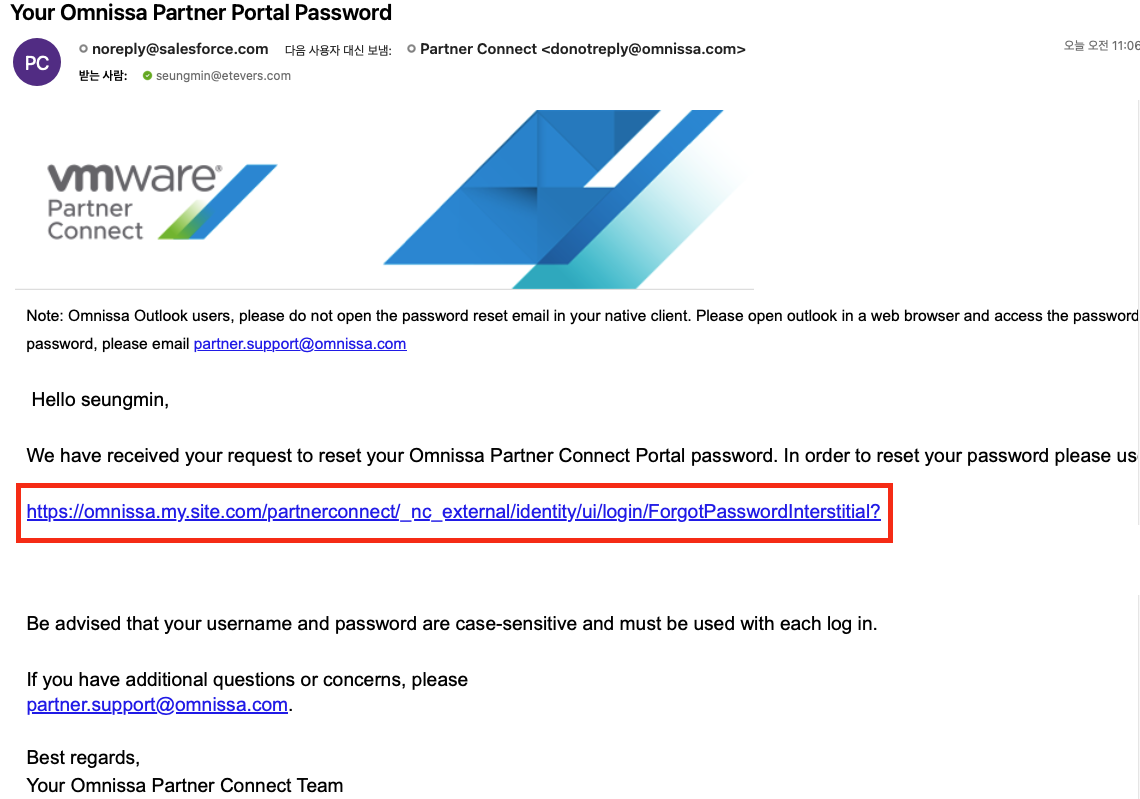 기존 VMware 회원의 경우, 사용하던 계정의 비밀번호 재설정 필요
