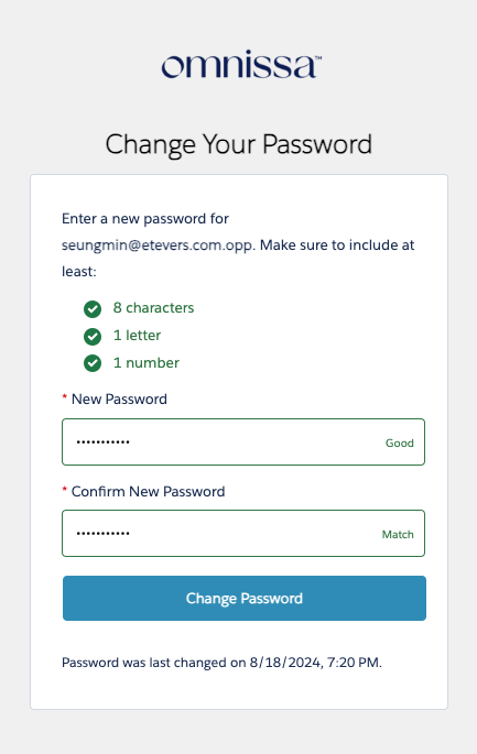 [Change Password] 버튼 클릭하여 비밀번호 재설정 완료