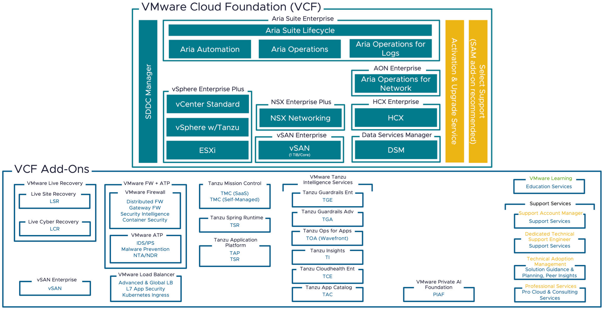 VMware Cloud Foundation은 서버, 스토리지, 네트워크 등의 각 영역을 클라우드 관리 환경 및 마이그레이션 수단과 유기적으로 연계하여 소프트웨어정의데이터센터를 구축 및 운영하기 위한 통합 방법론을 제공한다.