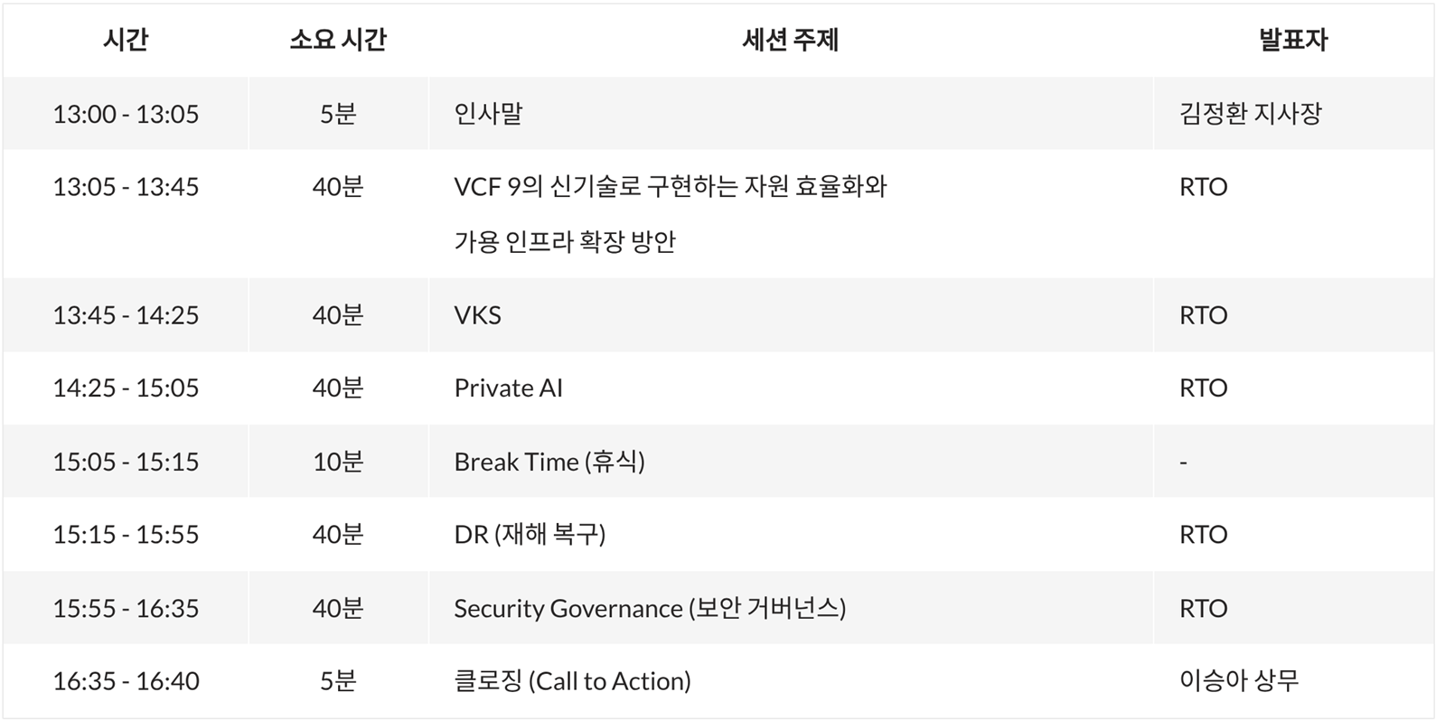 웨비나(Broadcom) - VCF 9.0 및 4대 핵심 도메인 Enablement
